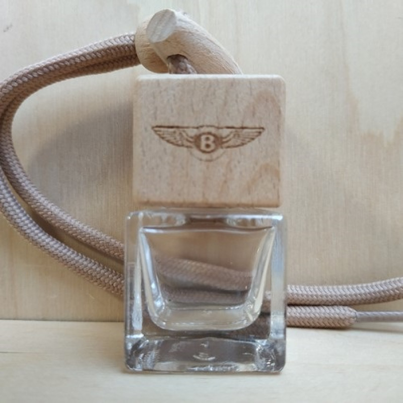 Стеклянный флакон с декоративной деревянной крышкой самый распространенный вид ароматизатора для автомобиля. Деревянная крышка впитывает аромат, а теплые потоки воздухообдува распространяют его в салоне машины. Крепится аромадиффузор двумя способами: с помощью шнурка или специальным креплением к дефлектору воздуховода. Стеклянный флакон с деревянной крышкой с логотипом Bentley