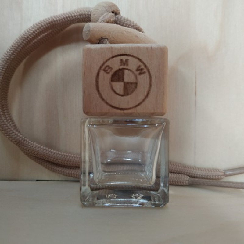Стеклянный флакон с декоративной деревянной крышкой самый распространенный вид ароматизатора для автомобиля. Деревянная крышка впитывает аромат, а теплые потоки воздухообдува распространяют его в салоне машины. Крепится аромадиффузор двумя способами: с помощью шнурка или специальным креплением к дефлектору воздуховода. Стеклянный флакон с деревянной крышкой с логотипом BMW