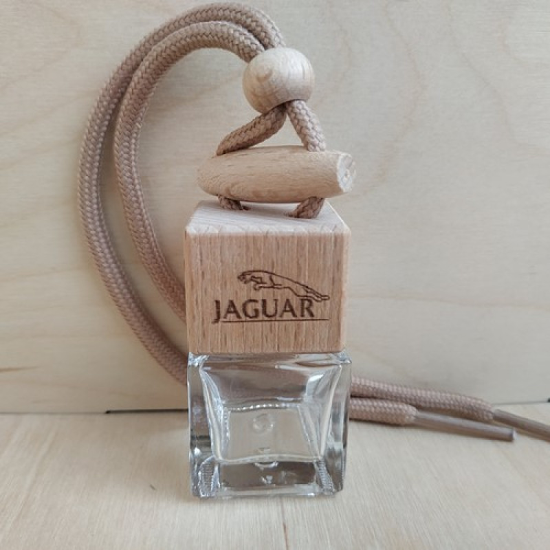 Стеклянный флакон с декоративной деревянной крышкой самый распространенный вид ароматизатора для автомобиля. Деревянная крышка впитывает аромат, а теплые потоки воздухообдува распространяют его в салоне машины. Крепится аромадиффузор двумя способами: с помощью шнурка или специальным креплением к дефлектору воздуховода. Стеклянный флакон с деревянной крышкой с логотипом Jaguar