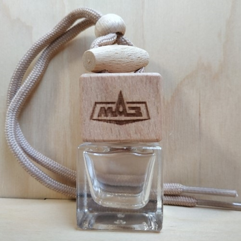 Стеклянный флакон с декоративной деревянной крышкой самый распространенный вид ароматизатора для автомобиля. Деревянная крышка впитывает аромат, а теплые потоки воздухообдува распространяют его в салоне машины. Крепится аромадиффузор двумя способами: с помощью шнурка или специальным креплением к дефлектору воздуховода. Стеклянный флакон с деревянной крышкой с логотипом МАЗ